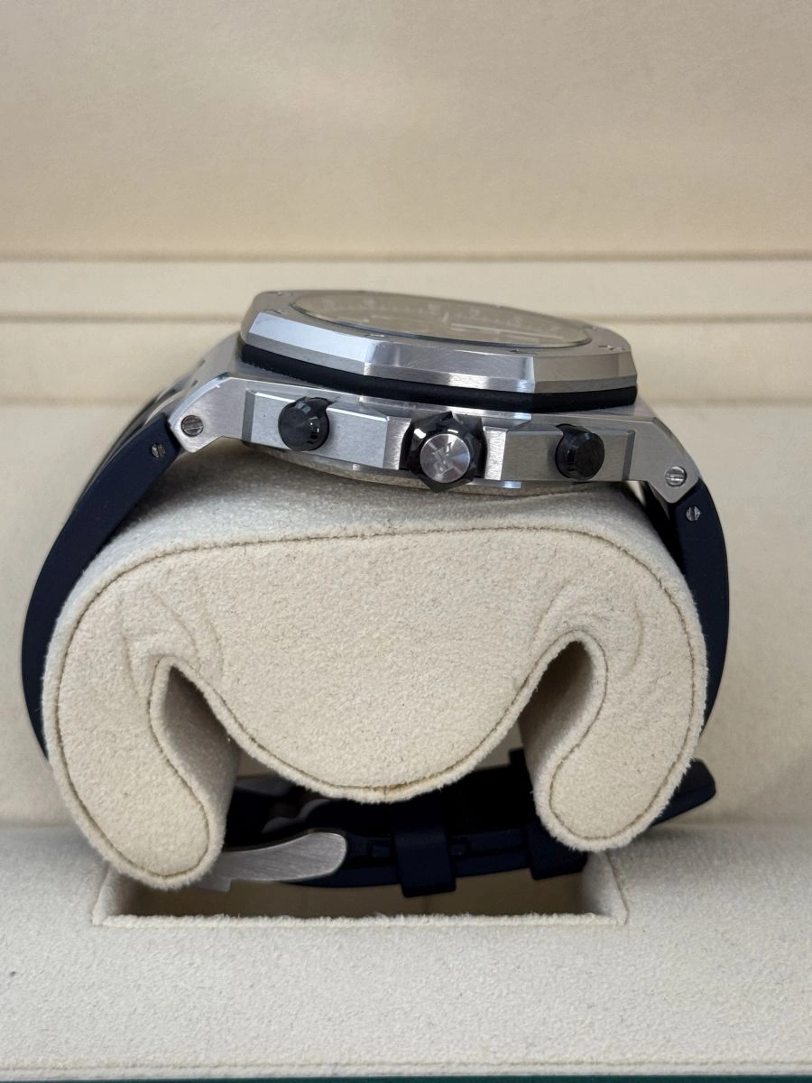 The Audemars Piguet Royal Oak Offshore (Ref. 26470ST) is a powerhouse in both design and performance. With a 42mm stainless steel case and a robust rubber strap, this timepiece offers durability and style in equal measure. The iconic “Tapisserie” dial and chronograph functions make it a true standout in the luxury watch world.